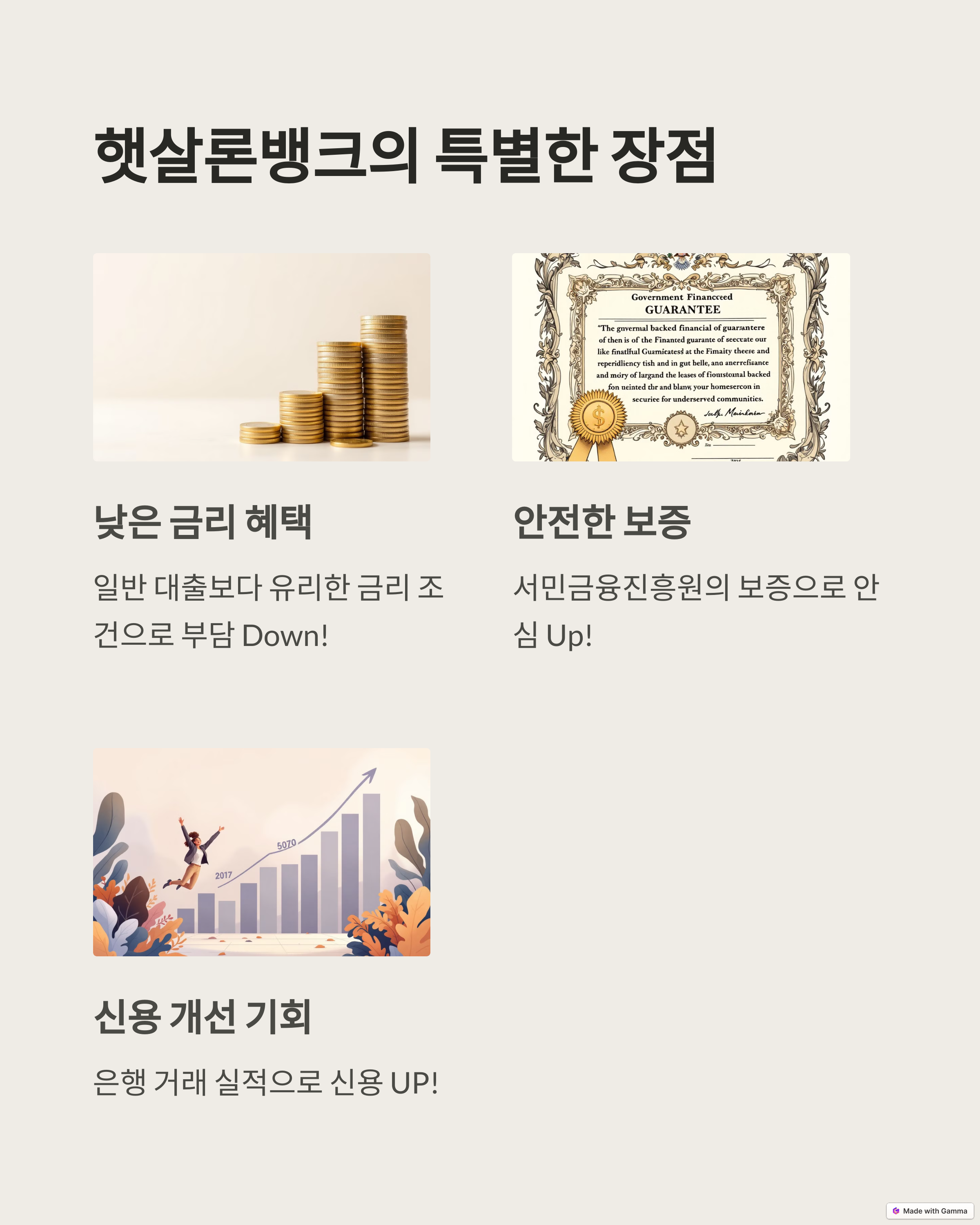 이 대출 상품은 주로 경제적으로 어려움을 겪고 있는 분들을 위한 것이므로, 더 많은 사람들이 혜택을 받을 수 있도록 설계되어 있습니다.